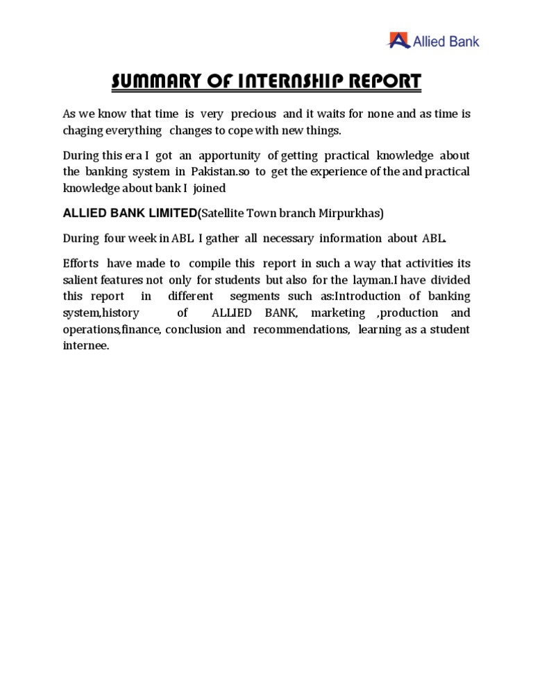 Summary Of Internship Report Pdf